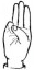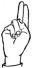 На ћирилици написано УНА ТРИКОШАНИН састоји се из 13 слова [?]. Исписано ћириличном једноручном азбуком за глувонеме:
